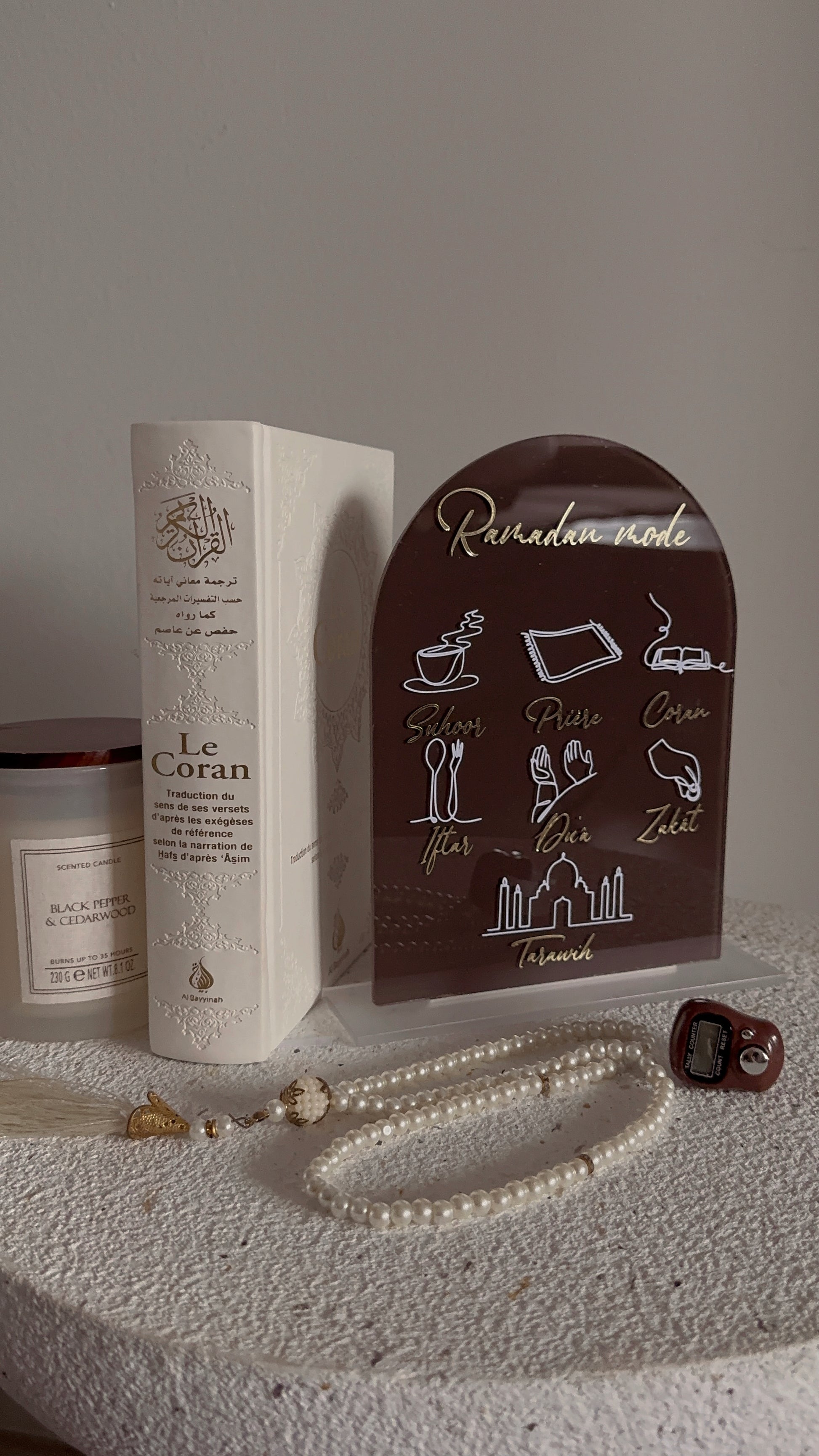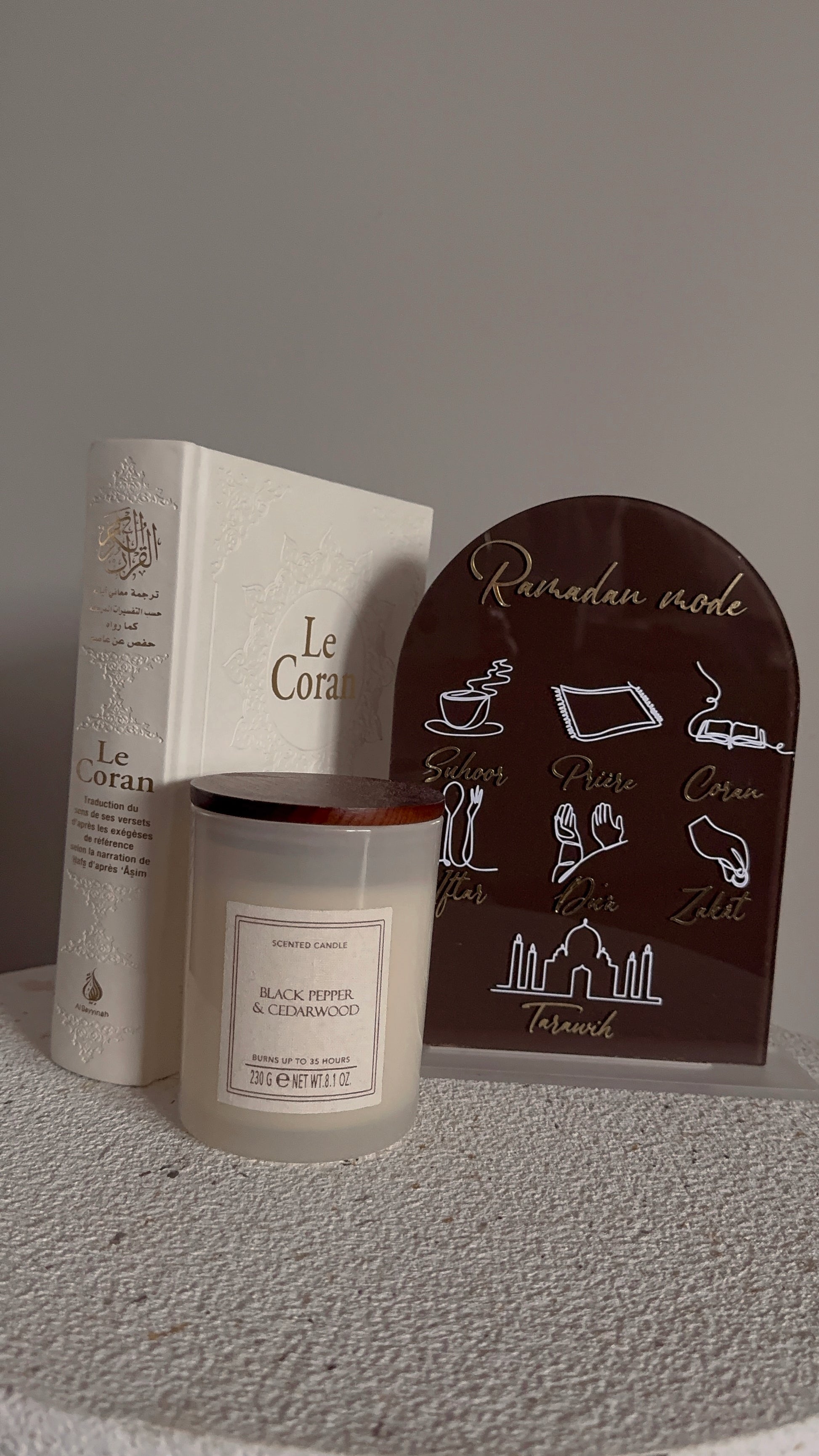 Pensée comme un objet décoratif à la fois sobre et symbolique, cette arche Ramadan accompagne le mois sacré et invite au rappel de ses fondamentaux : spiritualité, partage et intention. Son design épuré et intemporel s’intègre harmonieusement à tous les intérieurs.